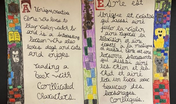 Ms. Pavlus’ Art class has done some amazing work in combination with Mr. Dube’s French Immersion class. Here is Ms. Pavlus’ story: