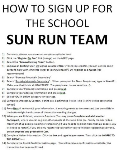 10888577_1197065567047675_3672560760258485669_nLAST CHANCE to sign up for the Sun Run this year! Get your friends and family to sign up today! Deadline is Wednesday, March 12th, at 12am…it’s only $28!