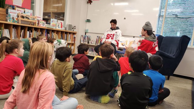 We are grateful to the SFU hockey team for making time to connect with our young readers. Their visit brought energy, inspiration, and a lot of new hockey fans to our halls!