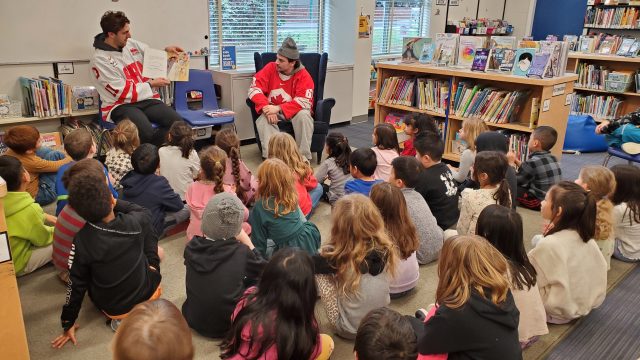 This week, our library buzzed with excitement as hockey players from Simon Fraser University stopped by for a special reading event. It was a joyful mix of books and Red Leafs spirit—an unforgettable morning for our students!